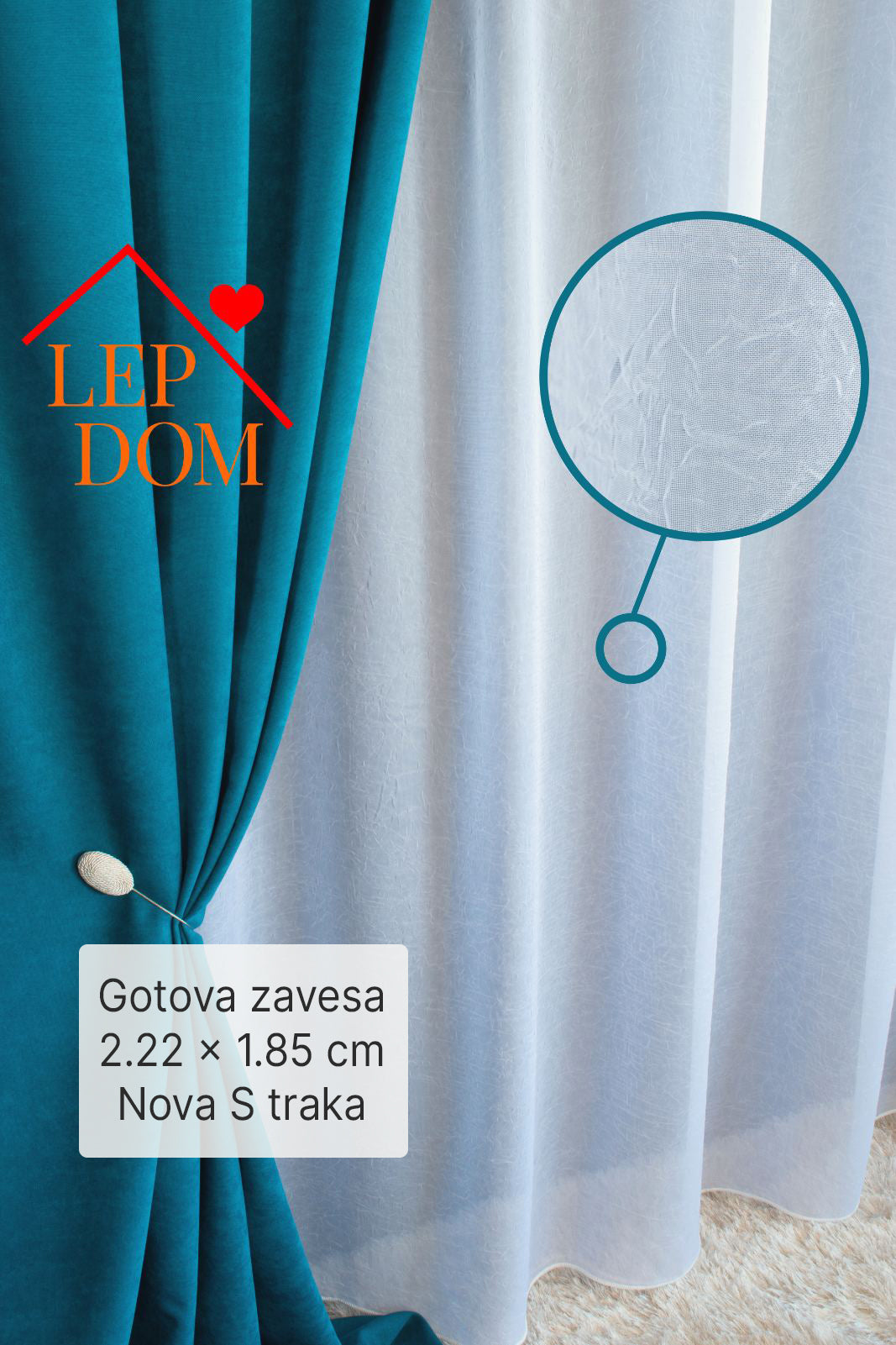 Gotova zavesa gužvani markizet beloj boji je sašivena u ovim dimenzijama: