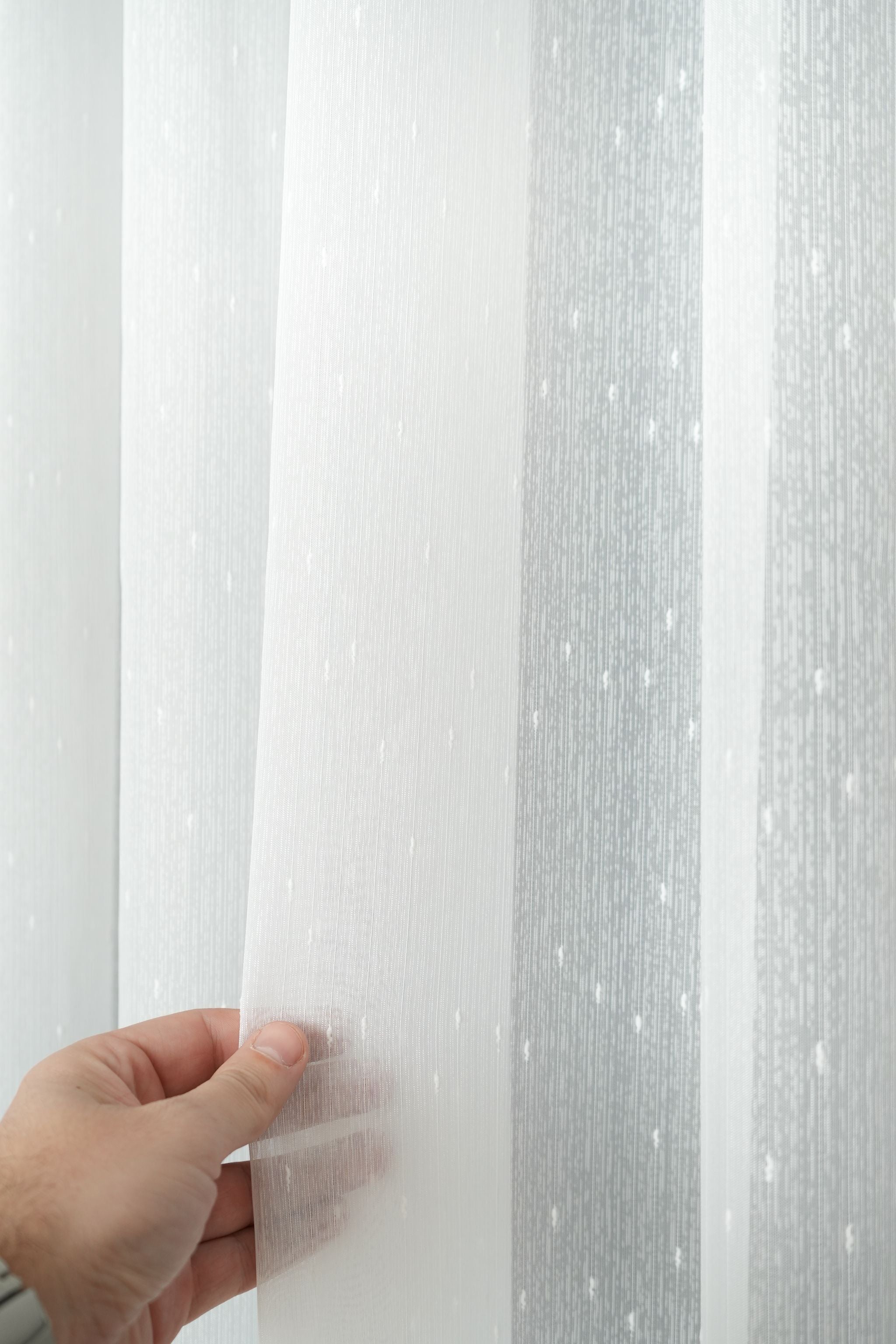 Bela Sara je klasična zavesa sa sitnim tačkicama koje joj daju dodatnu teksturu i nežan, dekorativan izgled. Ova zavesa unosi svežinu u prostor, pružajući svetlost i prozračnost bez narušavanja privatnosti.