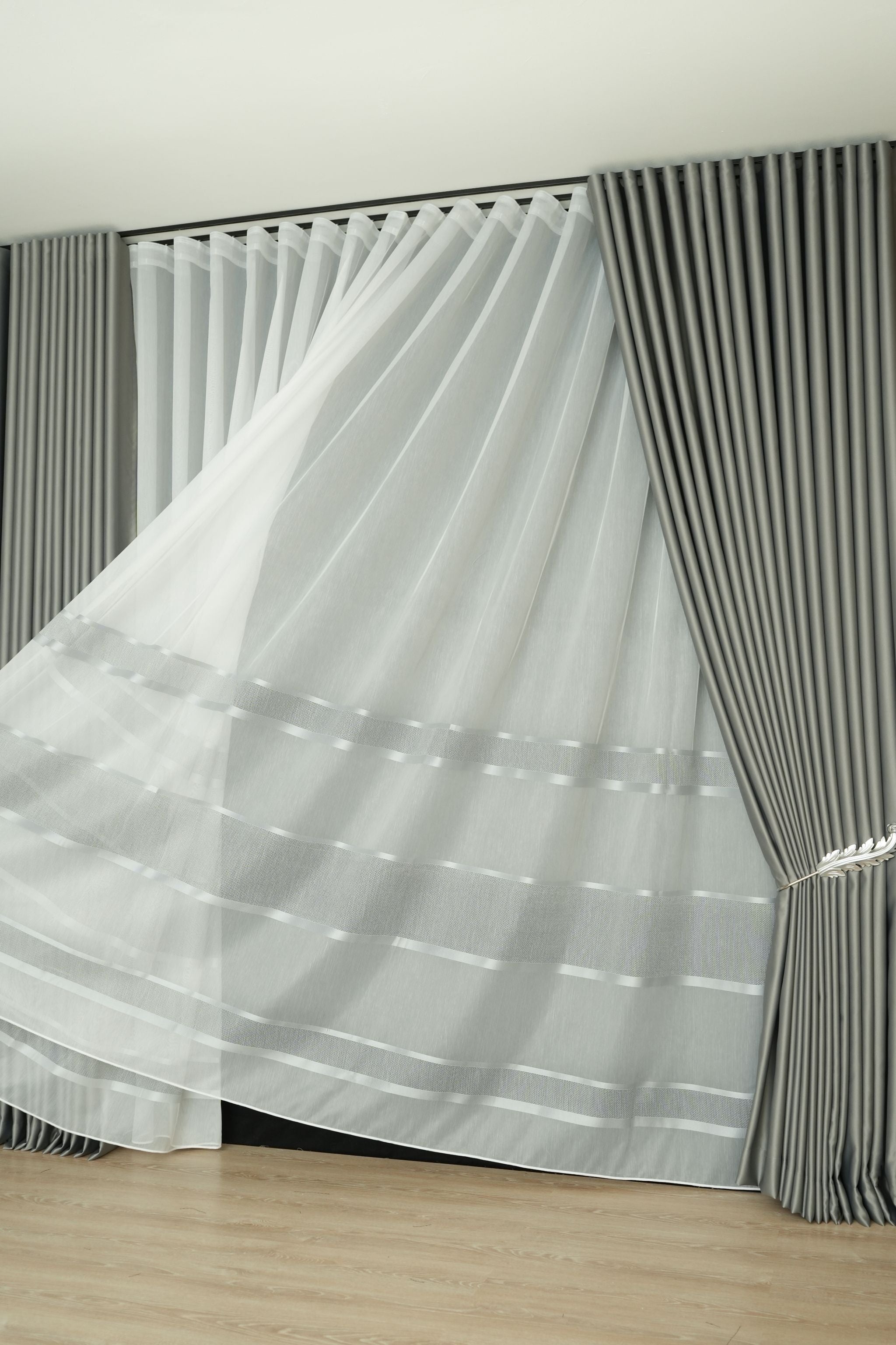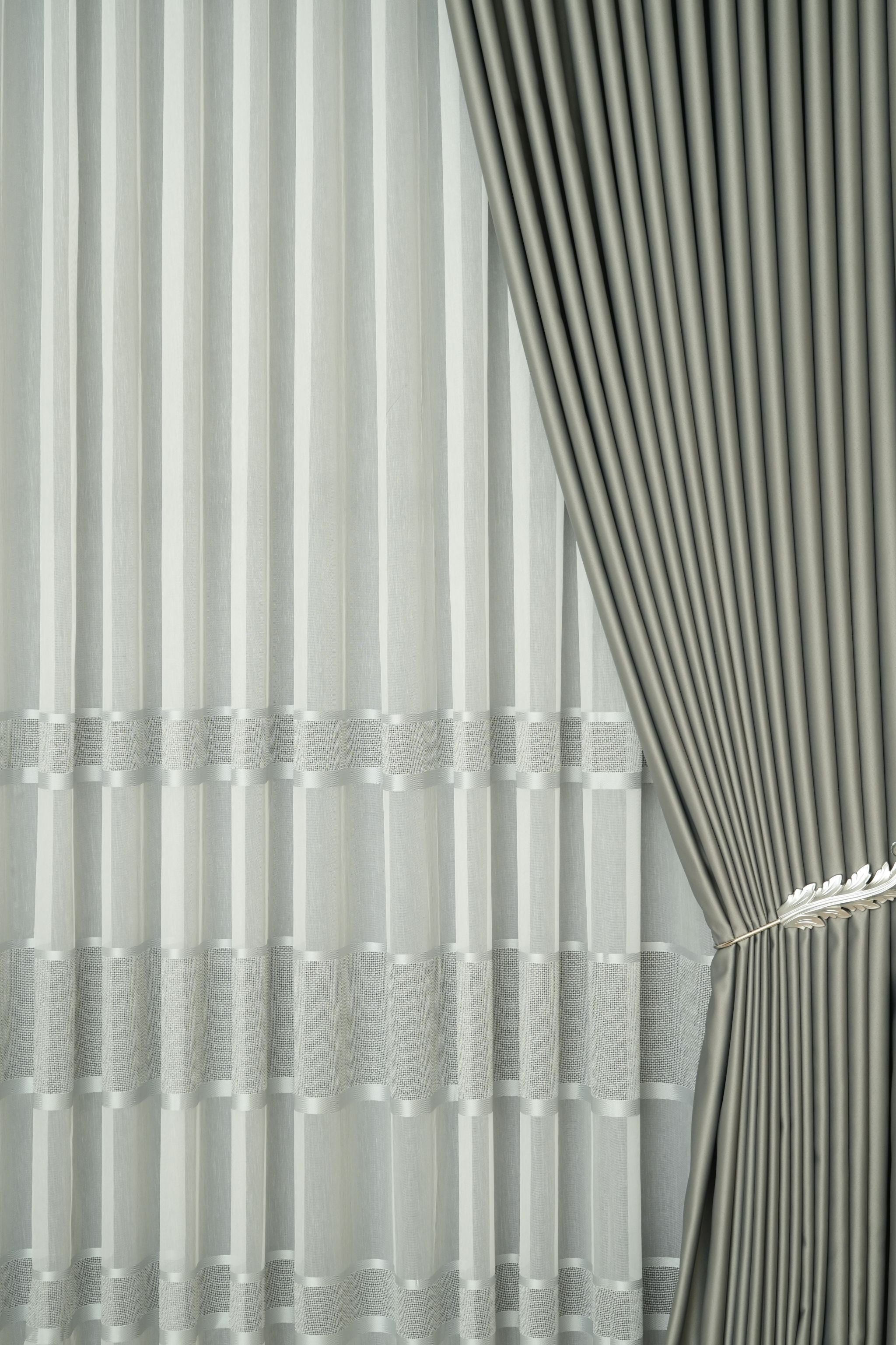 Zavesa Greta u sivoj boji donosi spoј vrhunskog kvaliteta i suptilnog dizajna. Tri diskretne horizontalne pruge stvaraju elegantan ritam na tkanini, dajući prostoru vizuelnu dubinu, ali bez prenaglašenog efekta.