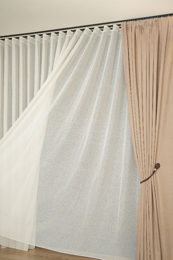 Ova toplo bela zavesa stvara atmosferu koja je svetla, prozračna i prijatna, savršenu za opuštanje i uživanje.
